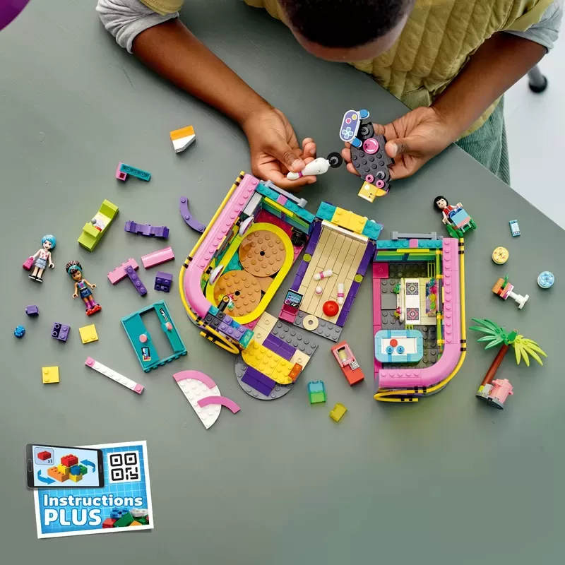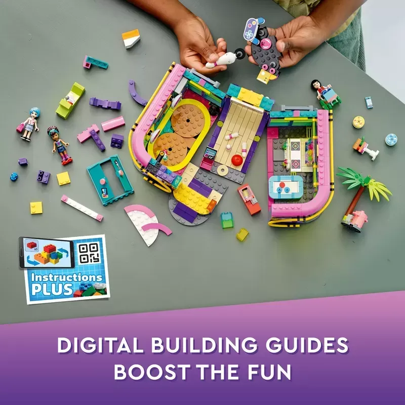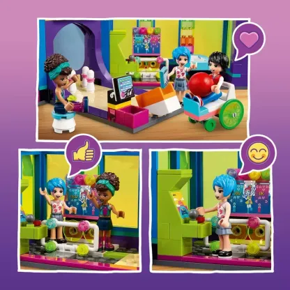 Fun, feature-packed playset – Open kids up to a world of creative fun and friendship play with this LEGO® Friends Roller Disco Arcade (41708) toy, hinged to reveal 3 exciting activity areas in 1