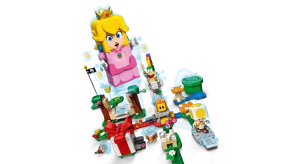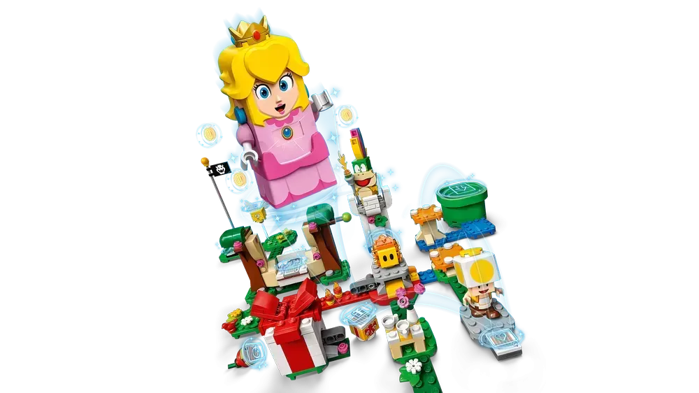 Interactive LEGO® Peach™ figure – Features a color sensor, an LCD screen to display various instant reactions to movement, and a speaker that plays iconic sounds and music from the video games