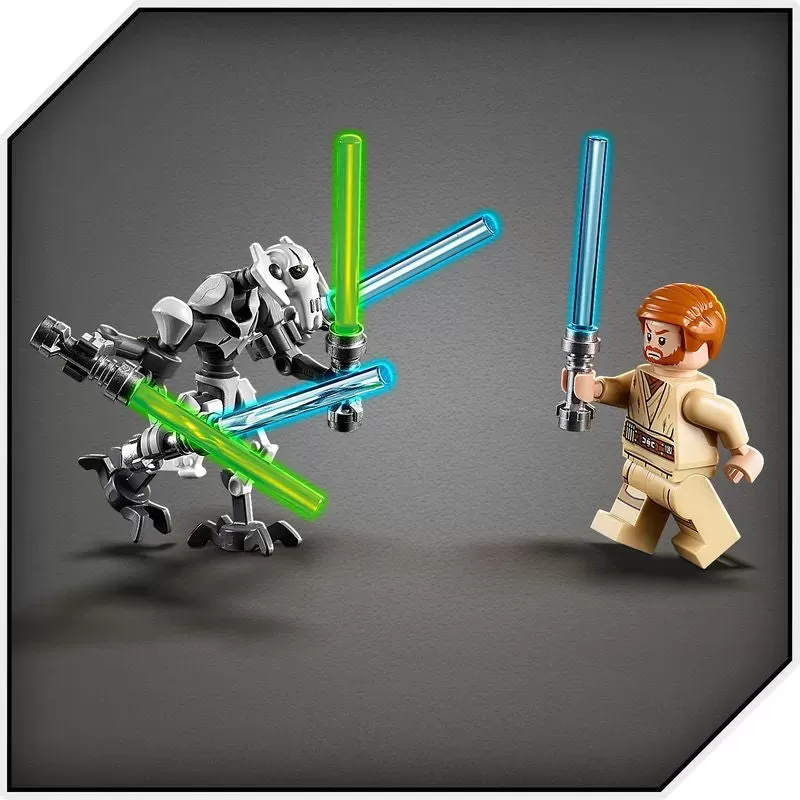 • This awesome building toy for kids includes 3 LEGO Star Wars minifigures - General Grievous, Obi-Wan Kenobi with a Lightsaber, and an Airborne Clone Trooper with a blaster - to role-play fun, creative stories.
