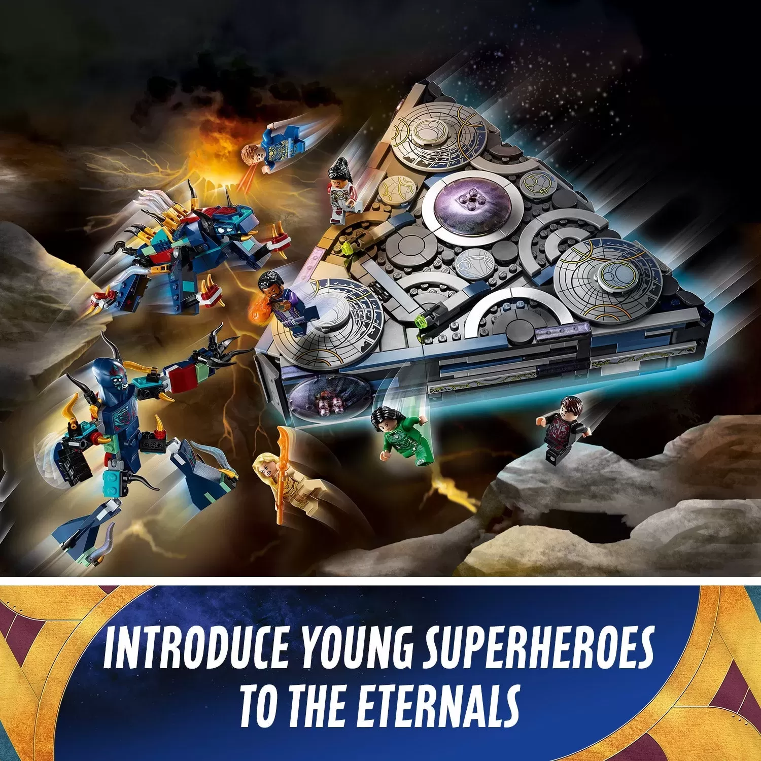 - Kids use their superhero skills in the final battle between the Eternals and the Deviants. The Eternals’ spaceship, with its detailed interior, ensures the imaginative play will be out of this world!