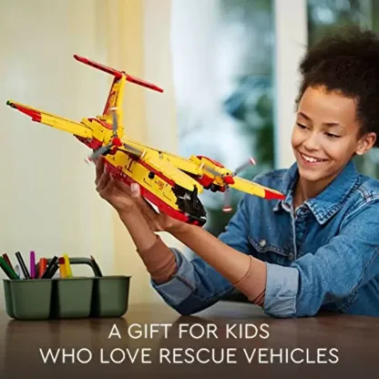 Give kids ages 10 and up a cool building challenge with this LEGO Technic Firefighter Aircraft (42152) model airplane toy set. It’s packed with features inspired by real-life fire planes so kids can see how all the functions work together during firefighting operations. A challenge to share This is a great project for children and adults to enjoy together. There’s lots to discover as kids make the propellors spin, raise and lower the landing gear and see the tail flaps move. Kids will love opening the hatch to drop the LEGO ‘water’ elements as they learn how firefighter aircrafts put out fires. A creative introduction to engineering LEGO Technic buildable models feature realistic movement and mechanisms that introduce young builders to the universe of engineering in an approachable and realistic way. Download the LEGO Builder app and step into a new world of building fun where you can zoom in and rotate models in 3D, save sets and track progress.