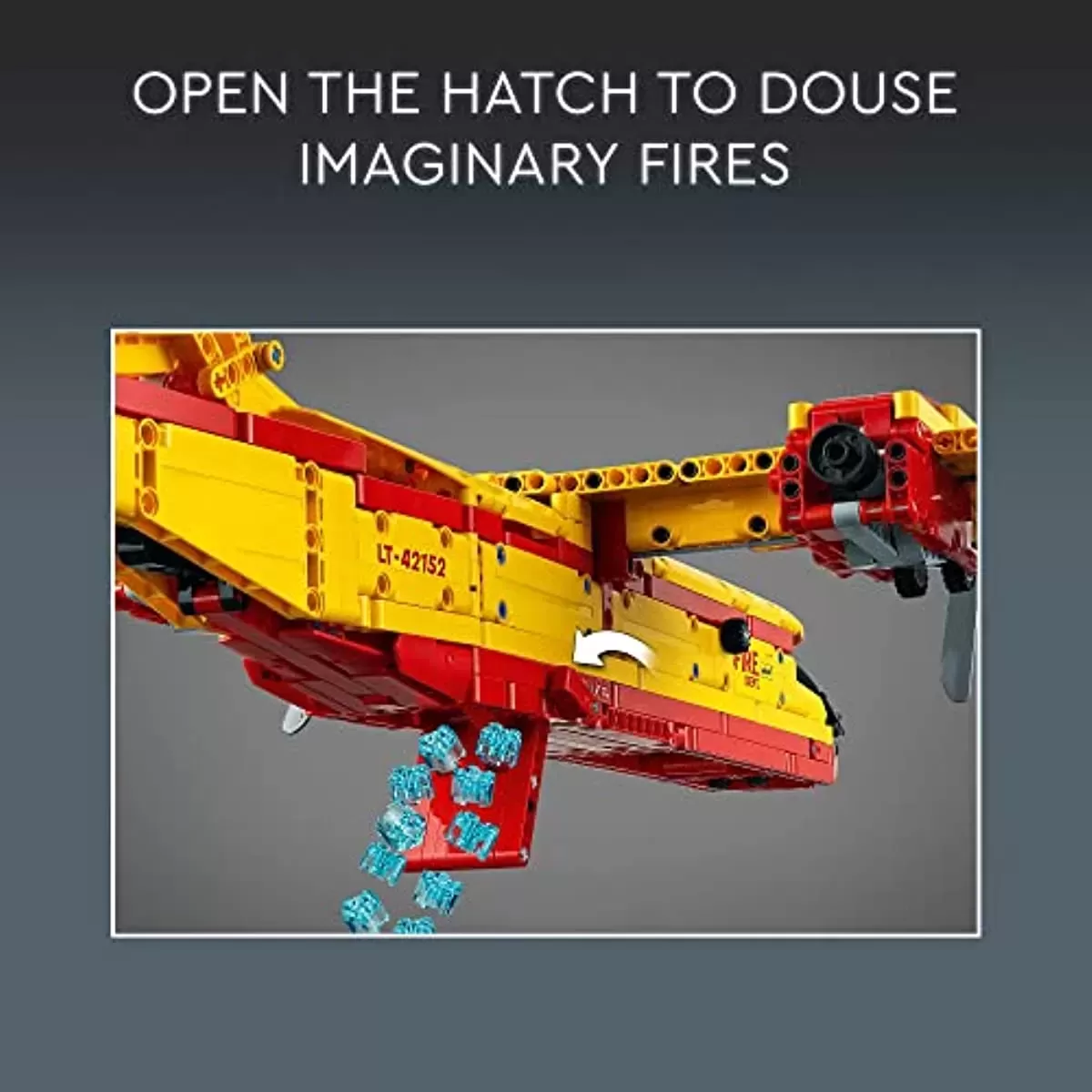 The set includes blue LEGO pieces so that kids can load the firefighting aircraft with ‘water’ and then open the hatch to douse imaginary fires